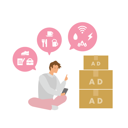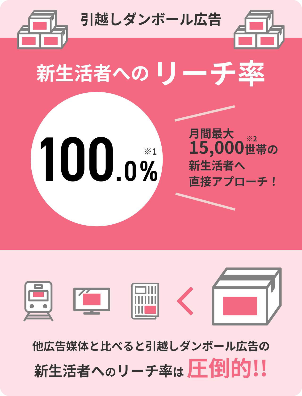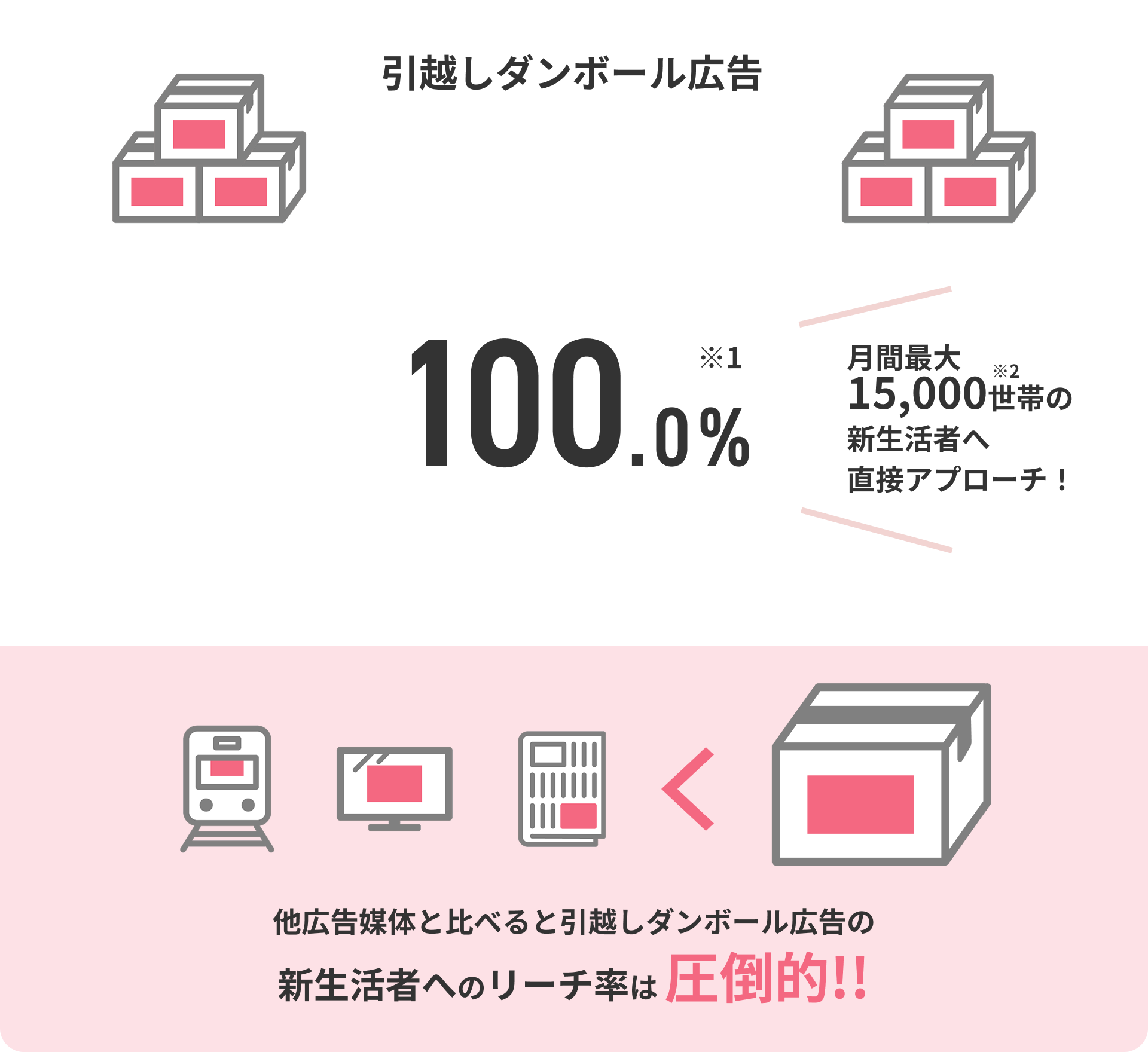 引越し前後2~3週間のご家庭へ、ダンボールを通じて直接広告が届きます。