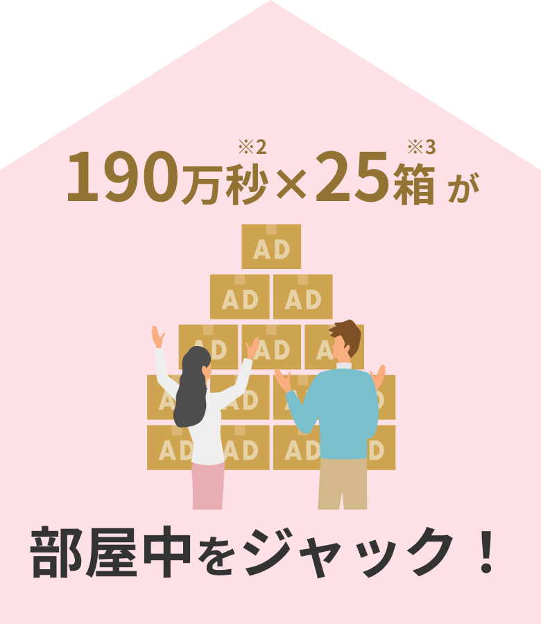 ※2025年2月1日~2月28日に当社提携引越会社により配布された段ボールの空間共有時間データをもとに、段ボールが利用者の生活空間に滞在していた合計日数を算出しています。