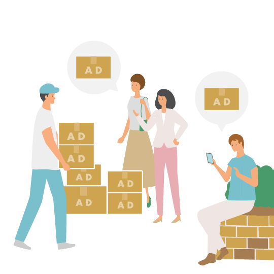 ダンボール広告のすべての枠を1企業様だけにご提供する独占型プラン。他社との混在がないため、ブランドの訴求力を最大限に高められます。